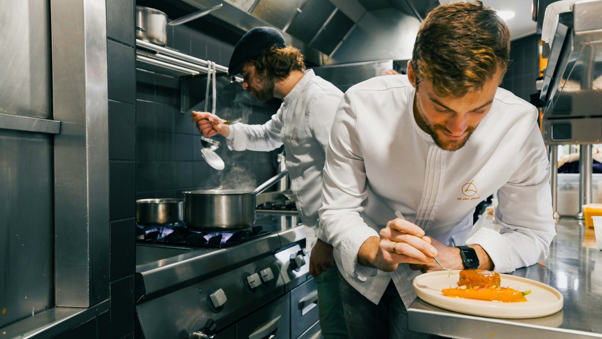 Les teintes chaudes et l'atmosphère feutrée rendent la salle du premier étage plus intime. Lumières tamisées, banquettes en cuir élégantes, fauteuils en velours, bouquets de fleurs séchées, vous êtes installés confortablement dans la salle à manger de la maison. Cet espace est totalement privatisable pour profiter pleinement de tout type d’évènement, pouvant accueillir jusqu’à 20 personnes en places assises et 35 personnes en cocktail.